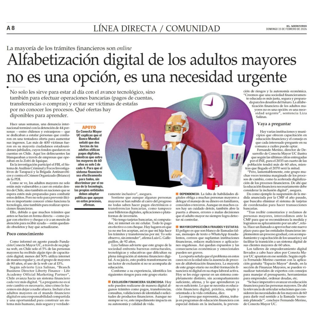 Según advierte Liza Salinas, “Branch Business Director Liberty Finance – Life Academy Official Marketing Partner”, Chile avanza hacia un sistema financiero cada vez más digital. “La pregunta no es si este cambio es necesario, sino cómo lo hacemos sin dejar a nadie afuera. Incluir a los adultos mayores en el mundo financiero digital es una responsabilidad compartida y una oportunidad para construir un sistema más humano, más seguro y verdaderamente inclusivo”.