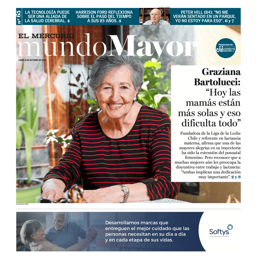 Podrás encontrar entrevistas a Pedro Carcuro y Ana María Aron, Líderes Mayores; Reportajes sobre la nueva longevidad en Chile, tips digitales, entre muchos contenidos más.